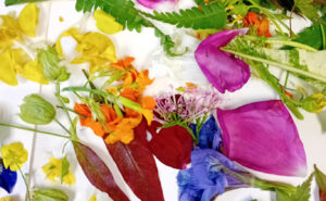 The artwork is being created during a series of five workshops taking place at the Expressions studio, which have been funded by The Arts Society Bristol. Using flowers and leaves collected from the local area and Bristol Botanic Garden, the group is working with Tom to create faces and figures out of these natural forms.