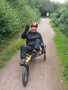 In early 2021, they heard about Warmley Wheelers. Steve’s balance and coordination have been badly affected by his stroke, but he was able to ride some of our specially adapted bicycles. Steve loved having the chance to do an activity he could take part in independently, and he and Sue now visit Warmley Wheelers every week.