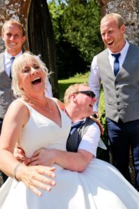 The day of the wedding arrived and with the support of Mel and his family, Jake was ready to walk his mum up the aisle. Mel followed him with his wheelchair the whole way up the aisle just in case Jake’s legs got tired, with the whole wedding party in awe of his achievements. Elizabeth said “I cannot cover 1% of the emotional support and help that Mel has given”